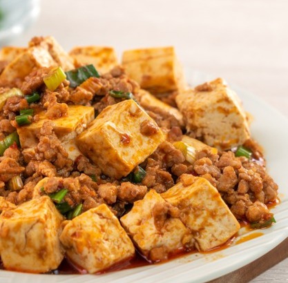 Soft Tofu, Mushrooms and Pork Cooked in a Spicy House Brown Sauce